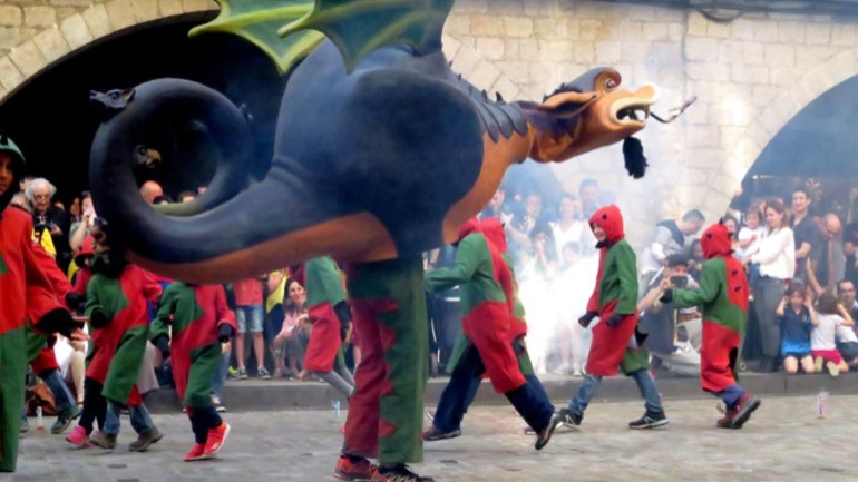 Encesa de pirotècnia a càrrec dels Diables de l'Onyar i cercavila a càrrec dels Trons de l'Onyar i el petit Drac Major.