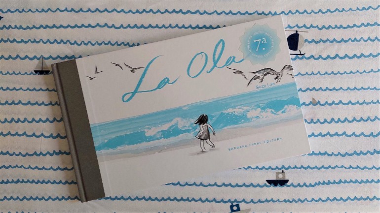 La ola és un àlbum sense paraules que explica una història mínima. Una nena va a la platja. Res més. Dos colors, blau i negre, amb el blanc com a aliat. Una platja deserta, una bandada de gavines, una nena, la seva mare, una onada, el mar, i un tresor.