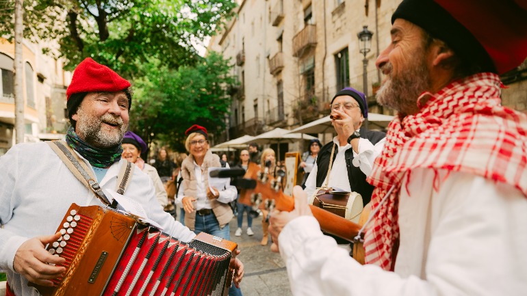 12:30 h: sortida a cantar a la plaça dels Mercaders i pels carrers del Barri Vell, tot fent parada a diferents comerços locals per degustar diferents menges i begudes amb porró.