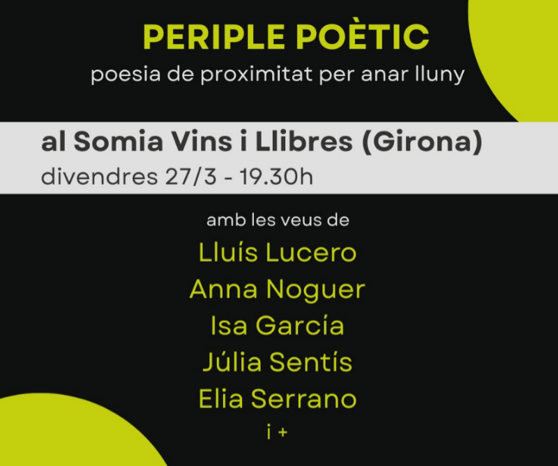 La poesia és sensorial, i el viatge dels sentits és un dels viatges més intensos que existeixen. Per això proposem un periple per la poesia de la mà de tres editorials de les comarques gironines: @somtremendes, @capdebrot i @laelageminada. Amb diferents veus poètiques dels nostres catàlegs, ens embarcarem en la sonoritat d'uns versos tàctils i gustosos, que ens fan volar sense haver d'agafar cap avió.