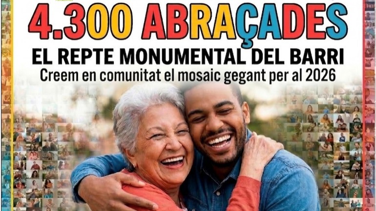 Ajuda'ns a crear l'obra col·lectiva més gran de Santa Eugènia! Estem recollint 4.300 fotografies d'abraçades per construir un mosaic monumental de 4x3 metres que s'exposarà al festival monar'T al setembre.