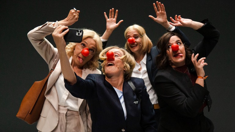 Nota de Las Huecas: “És indubtable que estem davant d'un apogeu reaccionari a tot Europa i al nord en global. La normalització de discursos ultraconservadors, racistes, islamòfobs i masclistes inunden els mitjans, les xarxes socials i els parlaments. Davant d'aquest panorama, Las Huecas creiem que el teatre pot ser un lloc on proposar una venjança o una restitució de l'ordre de les coses. Així doncs, denunciem una usurpació laboral intolerable; la ultradreta fa ús de la performativitat escènica, del posthumor i de la ficció en les formes de comunicació i divulgació. És per això que les comediants responem amb un exercici de reivindicació de l'humor com a arma antifeixista. Alhora, recordem que aquí, les idiotes professionals, som nosaltres. Per això fem ús d´una teatralitat estranyada, on importa la potència visual i el joc entre les convencions de la comèdia i els llocs comuns del terror psicològic, proposant un exercici còmic que opera mitjançant la fragmentació de la màscara, la paròdia degradada, el cos grotesc i la sàtira política absurda.”