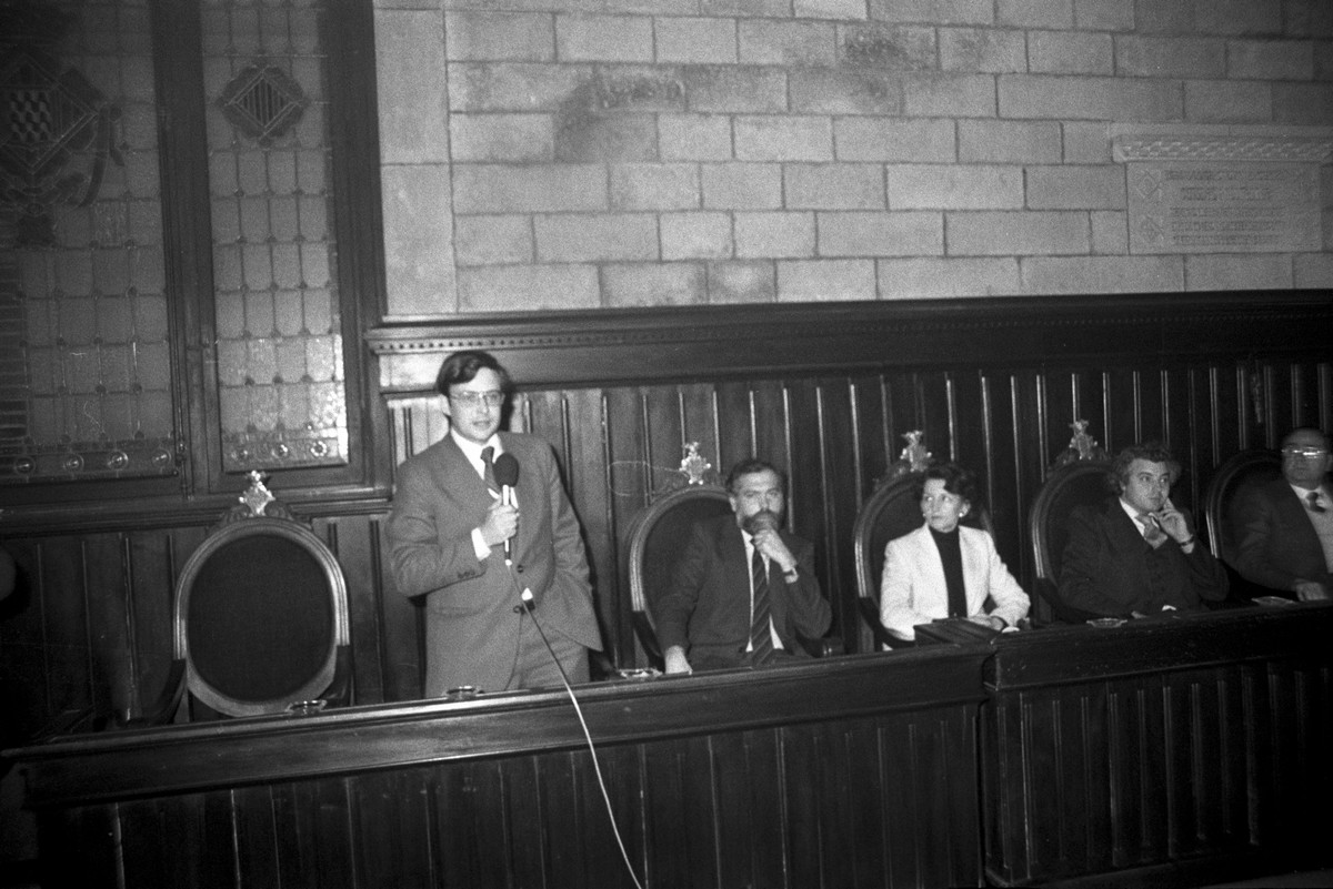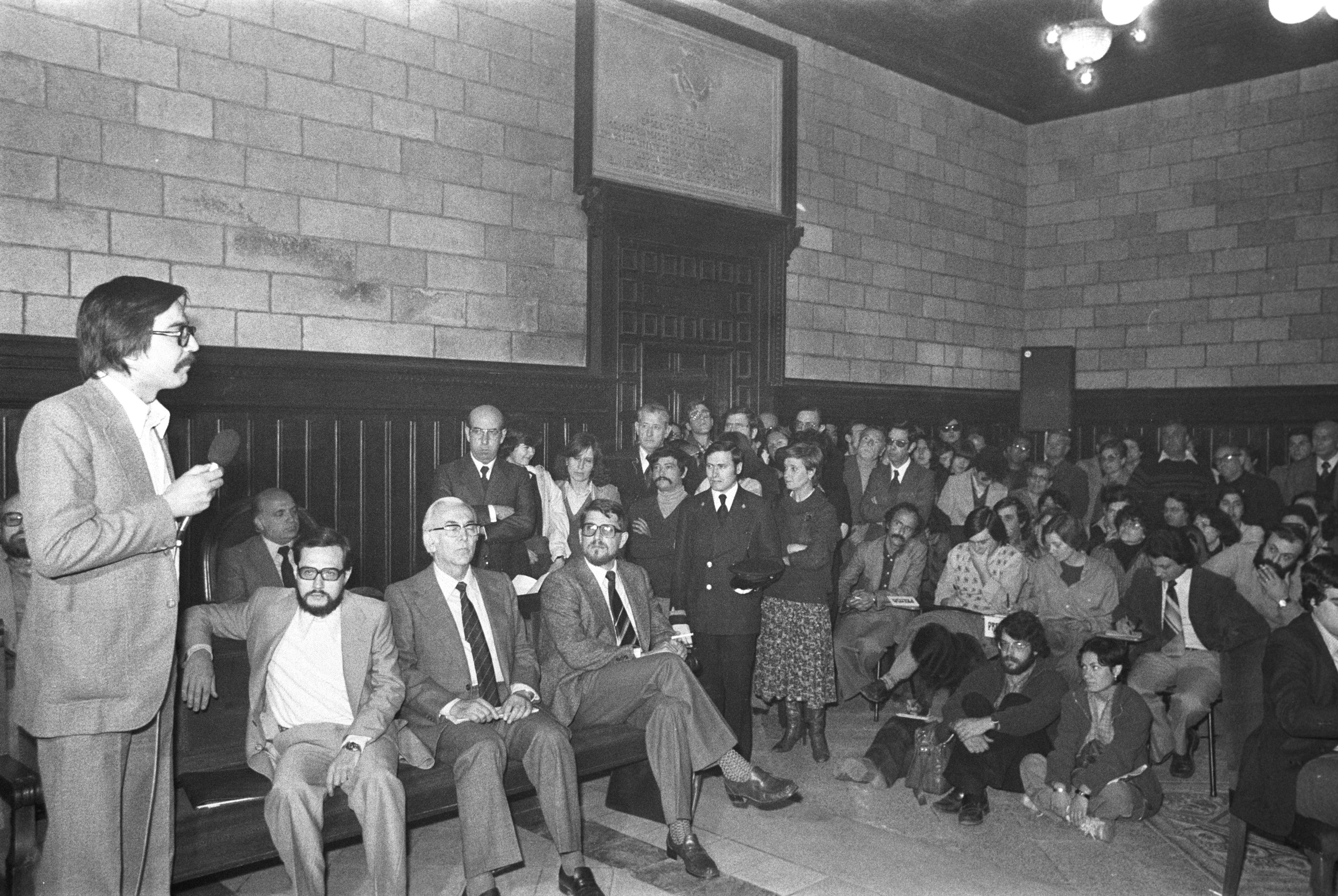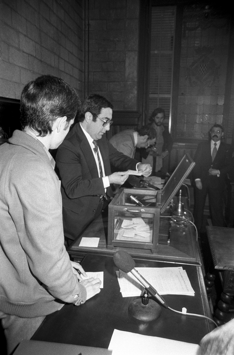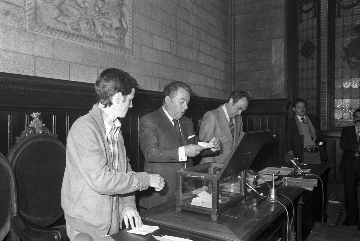 Enregistrament sonor íntegre del ple de constituió del primer ajuntament democràtic de la ciutat el dia 19 d'abril de 1979.