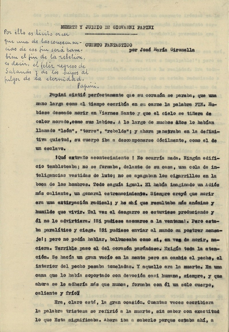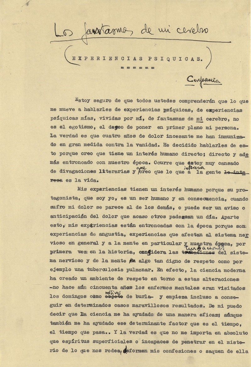 L'obra recollia diferents escrits inèdits, triats entre els vuit mil folis que escrigué a mà durant els cinc anys de depressió. A més d'aquests relats íntims, quasi confessions, aplegava altres textos com el conte "Muerte y juicio de Giovanni Papini", la conferència "Experiencias psíquicas" i diversos articles com "Anuncio para todos los periódicos del mundo", alguns dels quals foren editats, per separat, posteriorment.