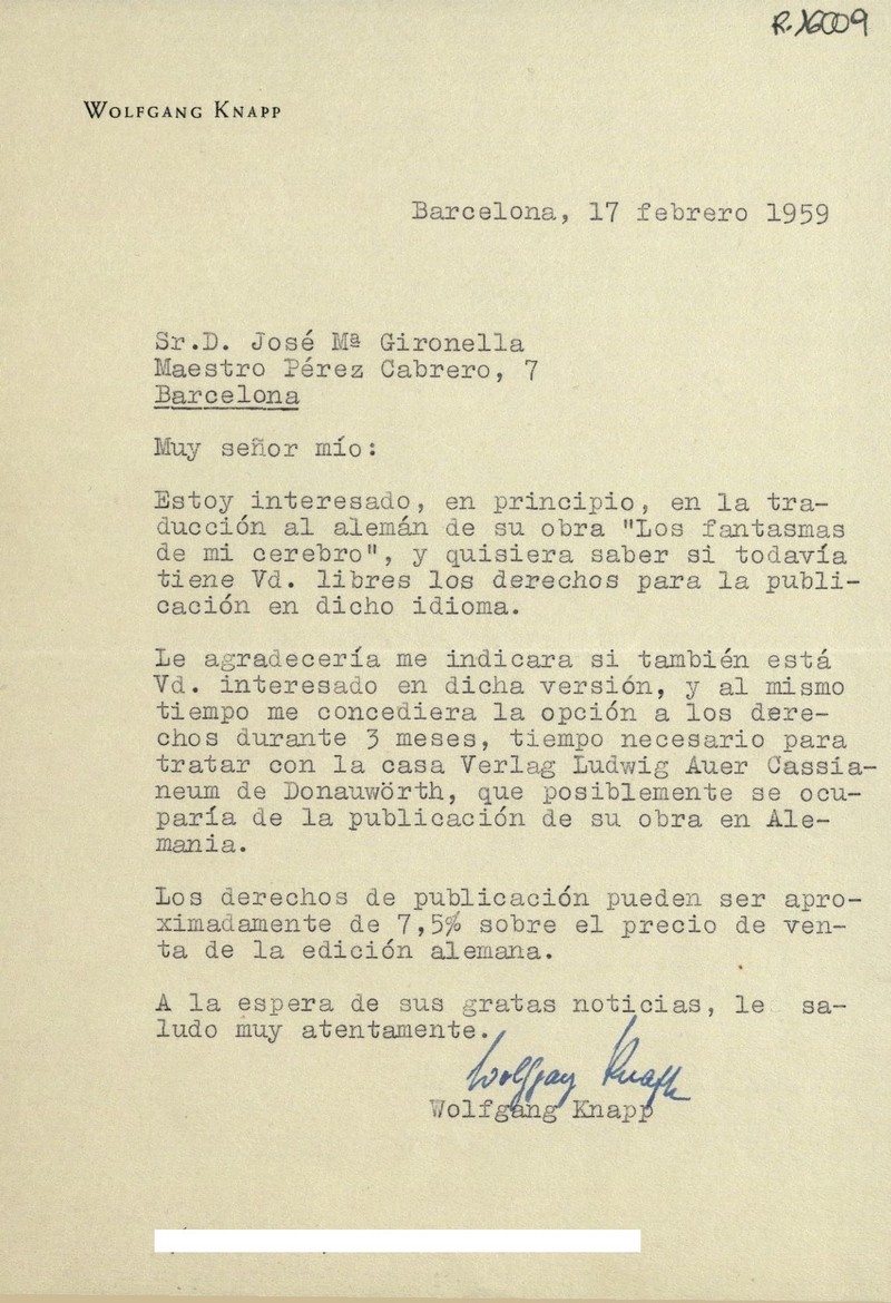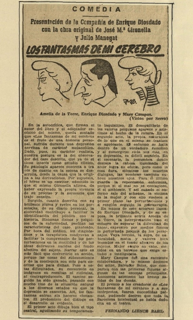 L'any 1958 l'Editorial Planeta publicava Los fantasmas de mi cerebro, una selecció de textos que Gironella va escriure entre 1953 i 1958, període en què estigué afectat per una greu depressió. L'autor va dedicar el llibre a Bartomeu Mestre, el neuròleg que el tractà durant la seva malaltia.