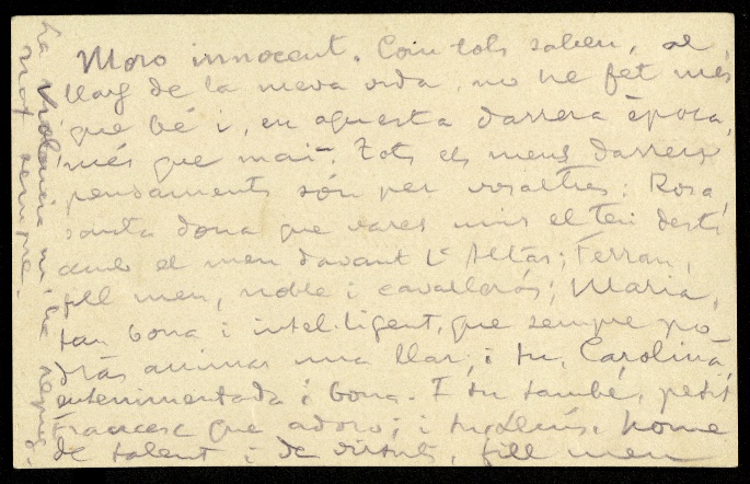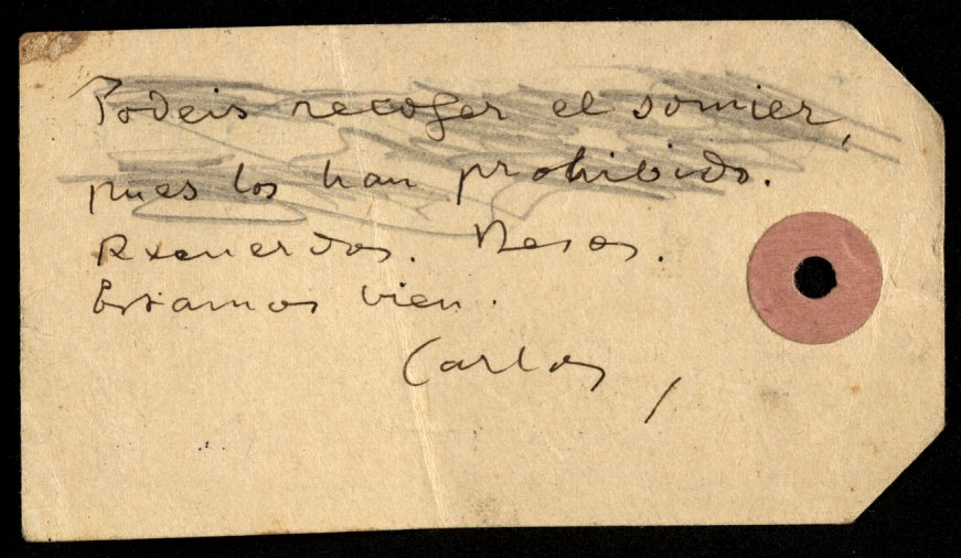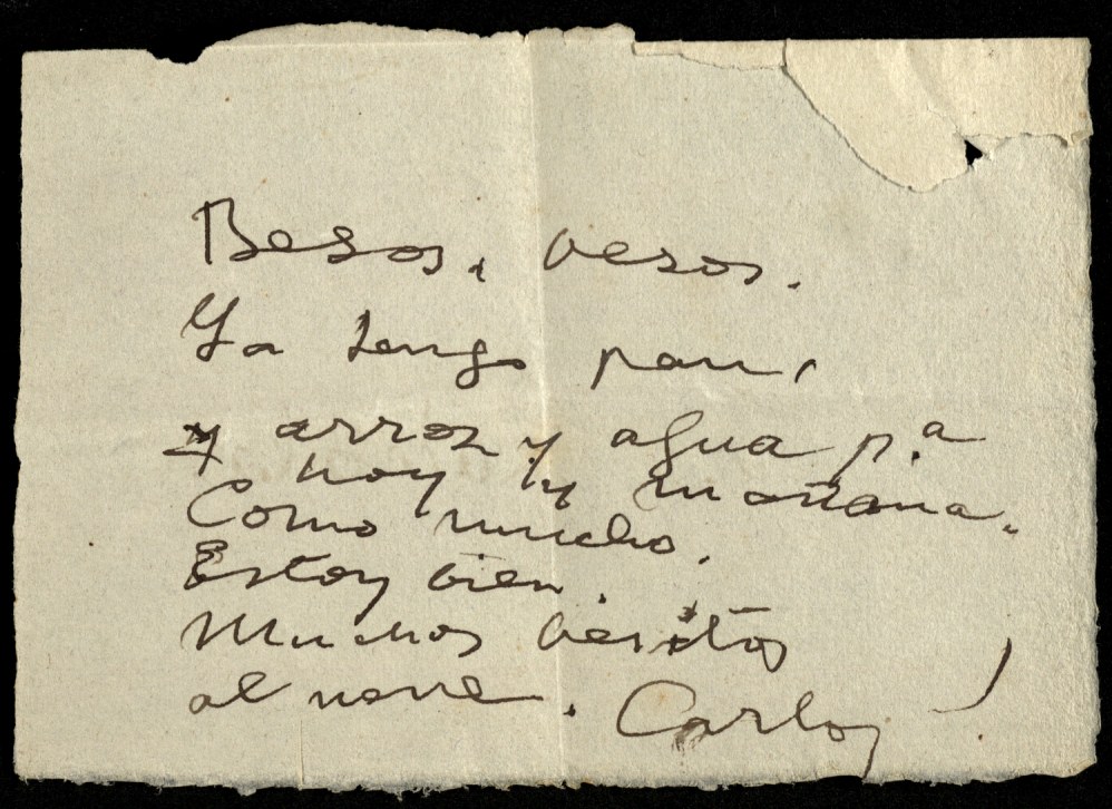 Tampoc els era permès escriure. Però Carles Rahola va aconseguir un llapis i va aprofitar tots els suports que va poder per continuar escrivint. Va redactar petites notes sobre les targetes de visita que li havien quedat a les butxaques del seu vestit o sobre qualsevol petit tros de paper, i les anava amagant entre la roba bruta que es donava a la família perquè la rentés. Fragments que eren curosament llegits i guardats.