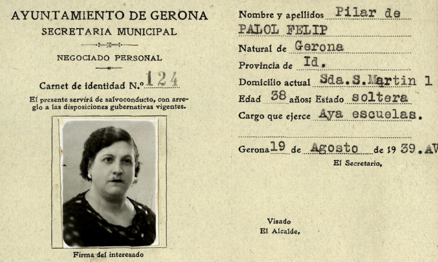 El 17 de maig de 1939 la Comissió Gestora de l'Ajuntament de Girona nomenava Salvador Campillo Ballester jutge instructor per a la depuració dels empleats municipals. L'Ajuntament actuava seguint la Llei de 10 de febrer de 1939, de Depuración de Empleados Públicos, i l'Ordre Ministerial de 12 de març de 1939 que adaptava la norma a la depuració dels funcionaris de l'Administració Local.