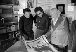 Rafael Santos Torroella, el pintor Antoni Tàpies i el poeta Rafael Alberti.